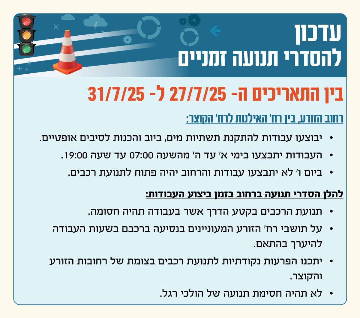 בין התאריכים ה- 27/7/2025 ל- 31/07/2025