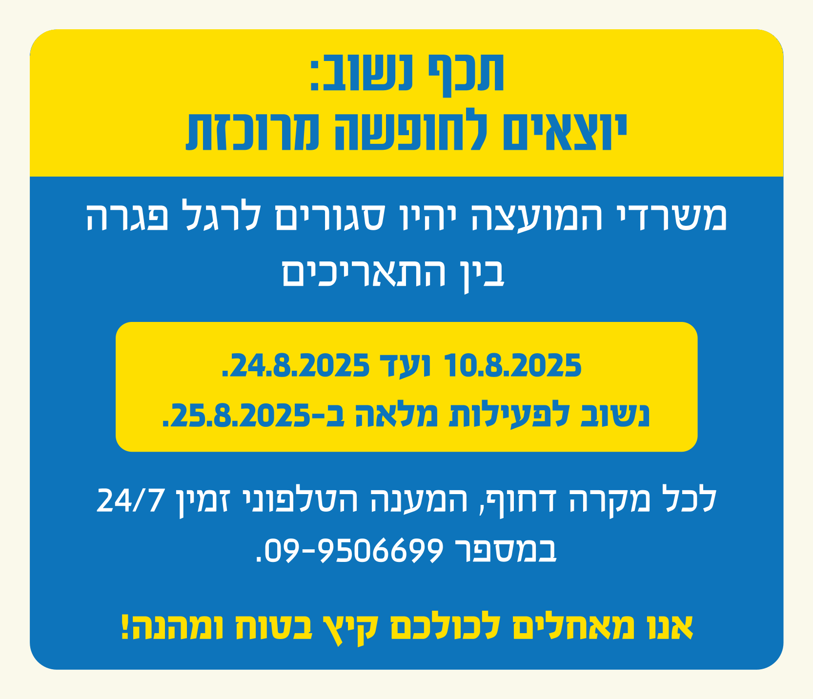 משרדי המועצה יהיו סגורים לרגל חופשה מרוכזת