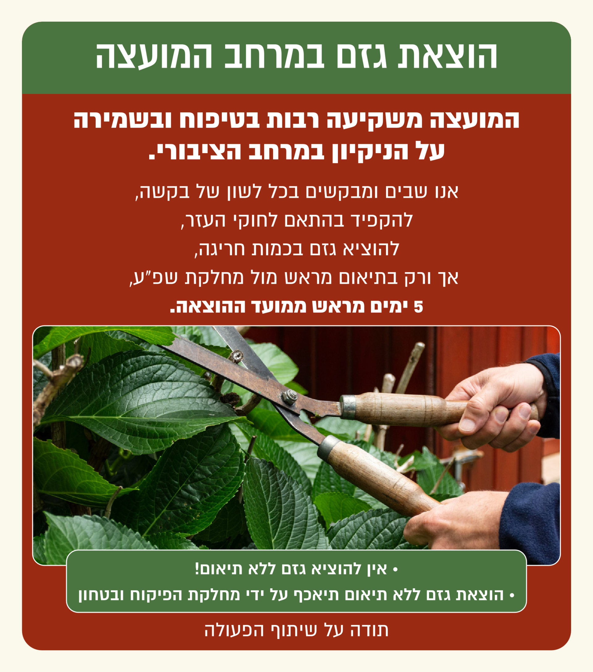 הוצאת גזם במרחב המועצה