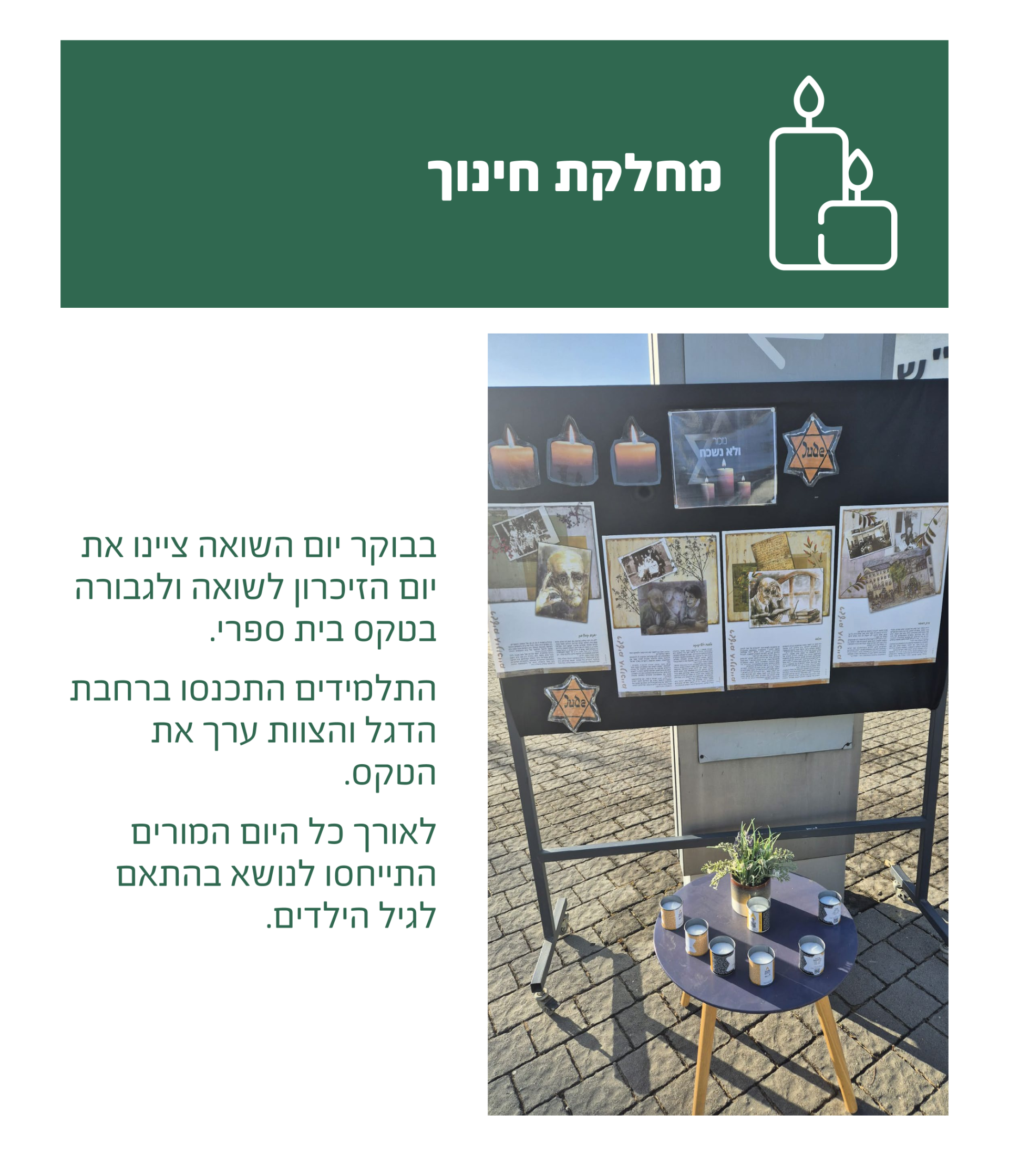 ציון יום השואה ולגבורה. בגנים חוזרים לחגיגות פורים.