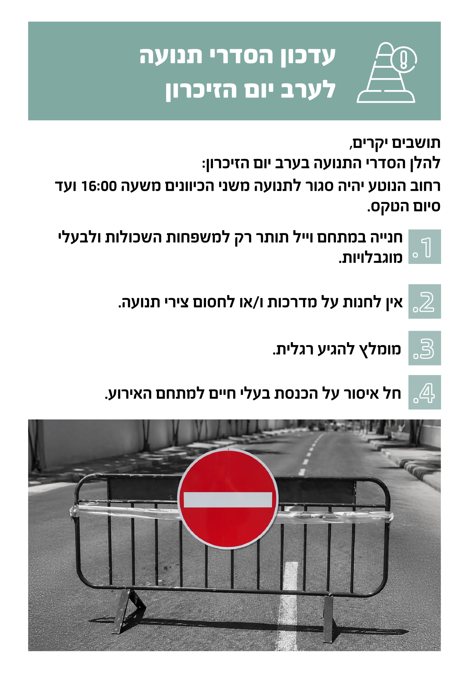 בין התאריכים 19/4/26 עד 23/4/26 וערב יום הזיכרון