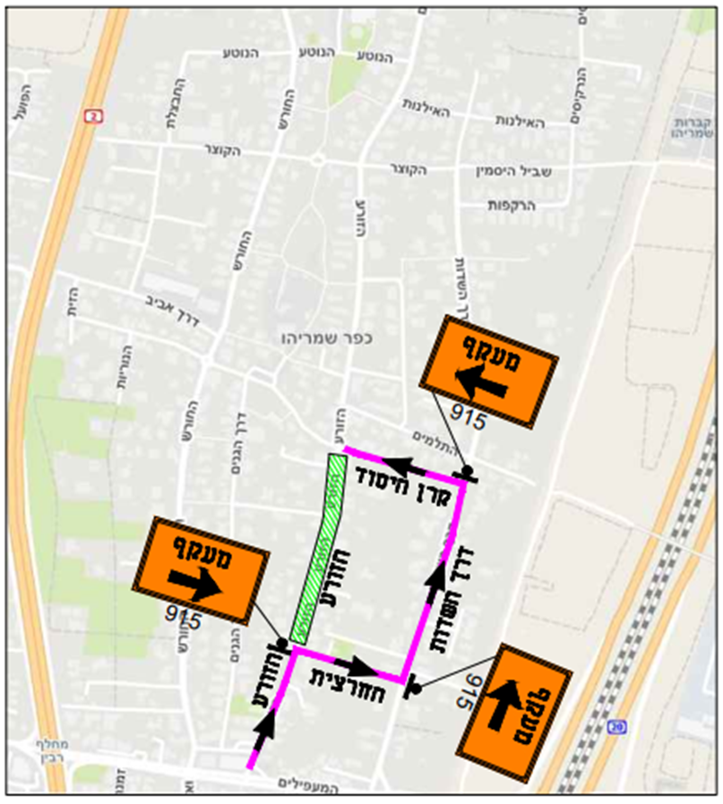 - להלן תכנית הסדרי התנועה לעבודות מרח' החרצית עד רח' קן היסוד כאשר קטע זה של הדרך יהיה חסום לתנועת רכבים: