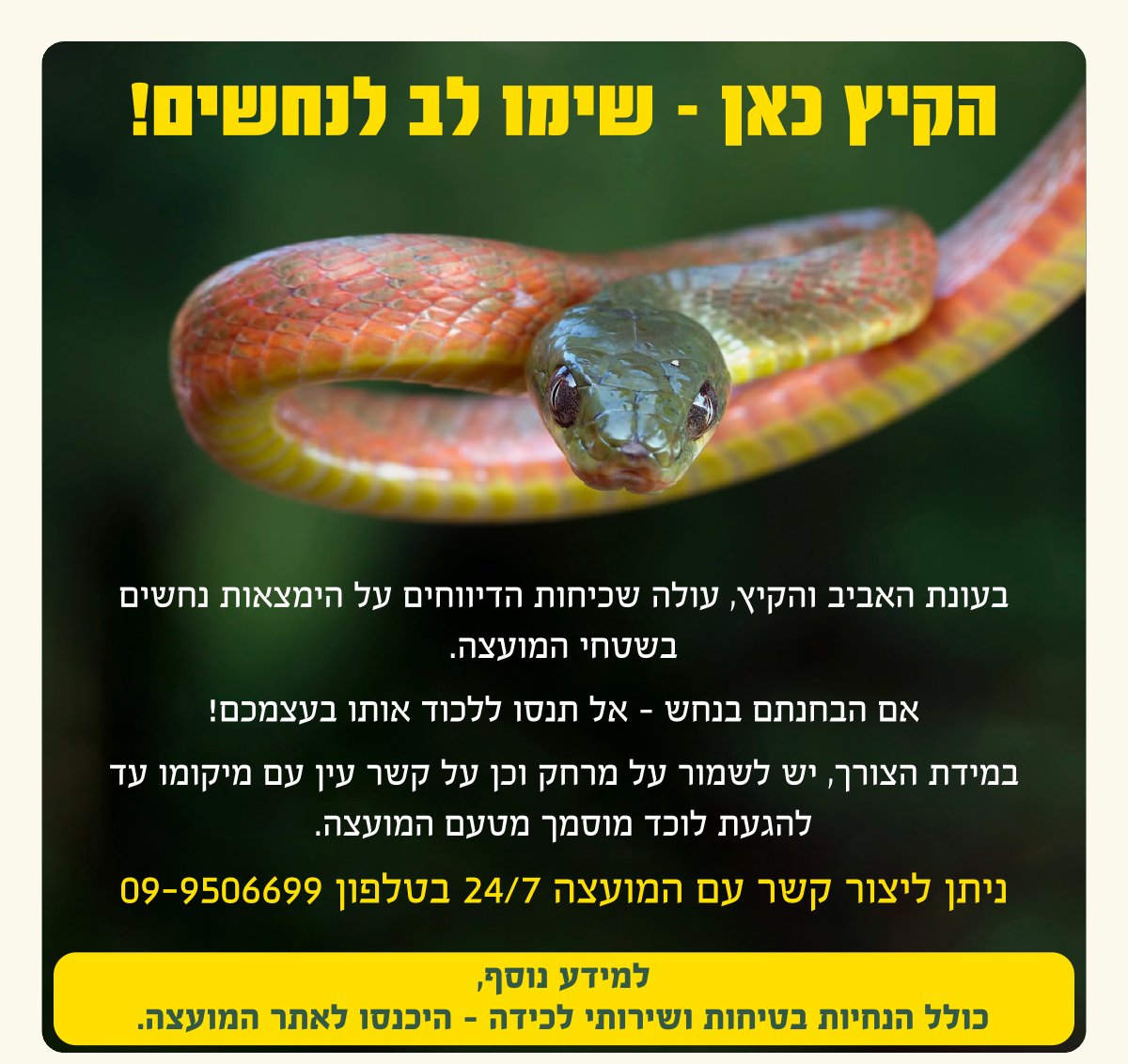 בעונת האביב והקיץ , עולה שכיחות הדיווחים על הימצאות נחשים בשטחי המועצה.