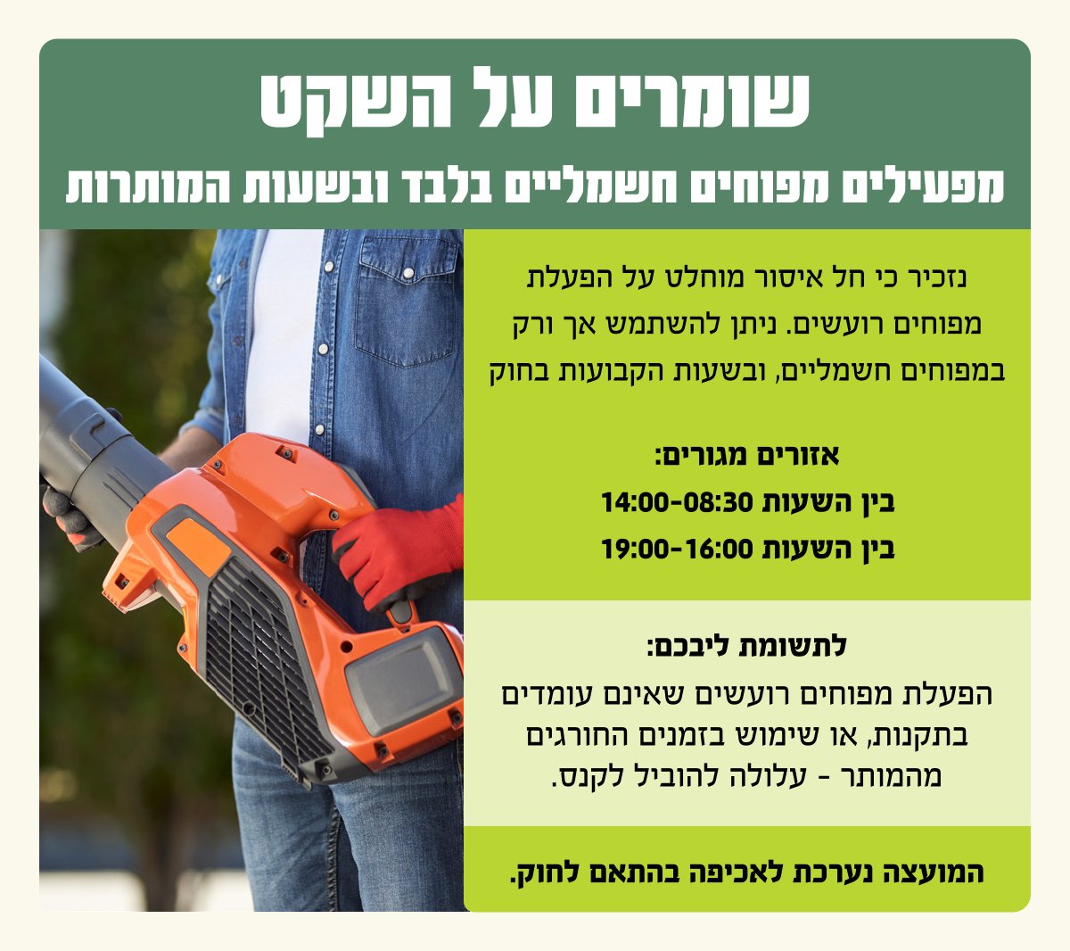 מפעילים מפוחים חשמליים בלבד ובשעות המותרות.