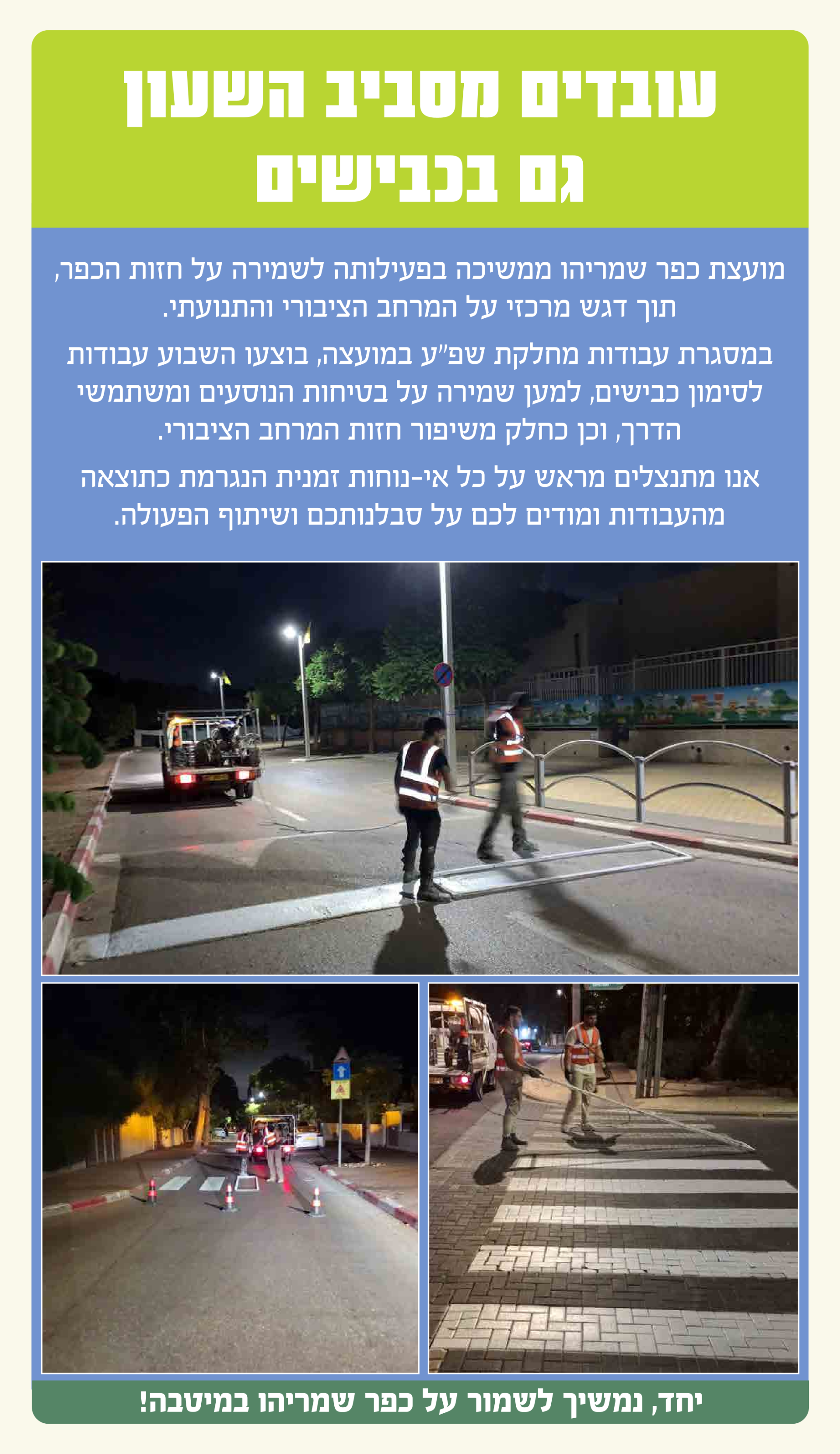 במסגרת עבודות מחלקת שפ"ע במועצה, בוצעו השבוע עבודות לסימון כבישים למען שמירה על בטיחות הנוסעים ומשתמשי הדרך