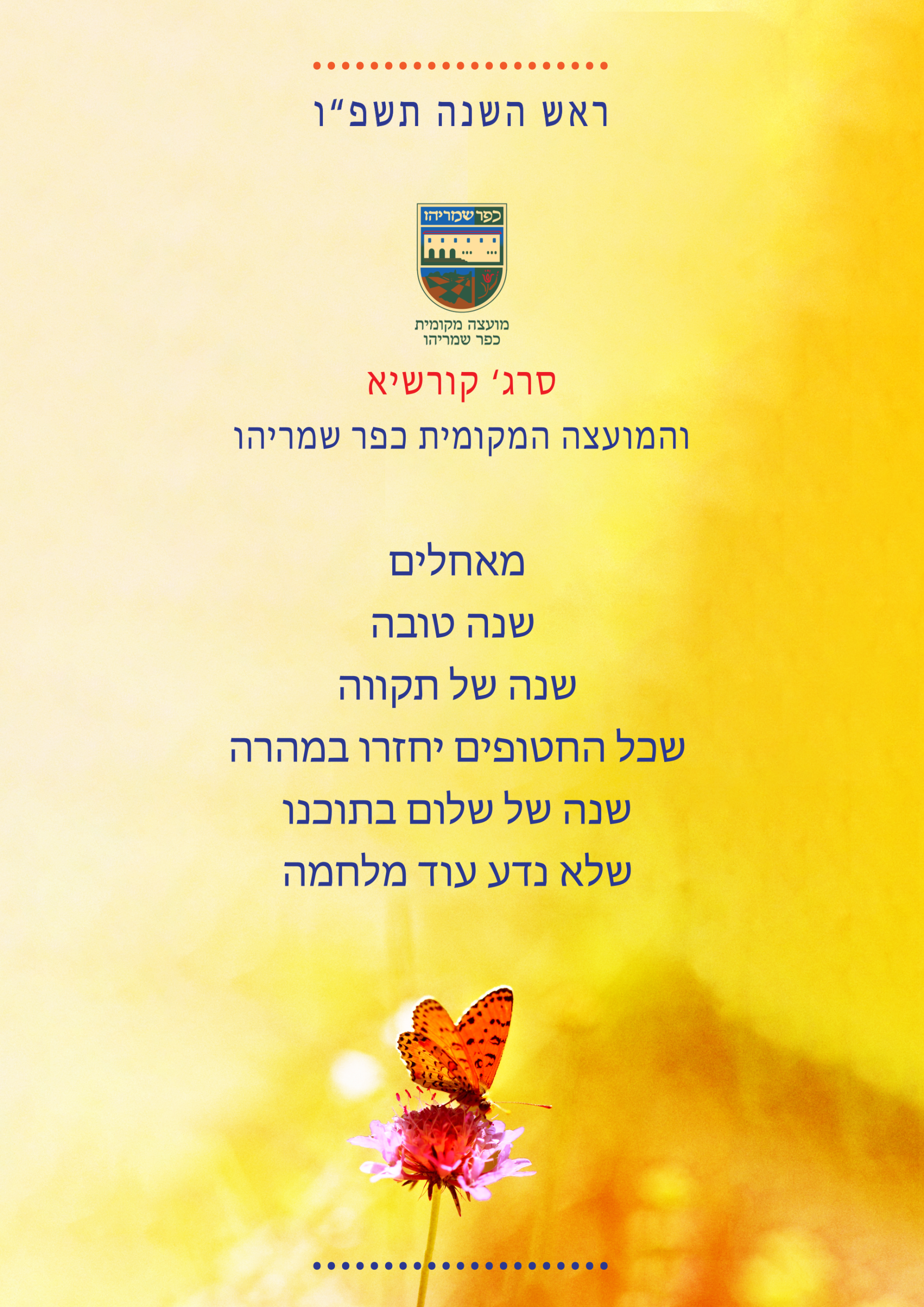 לתושבות ותושבים היקרים שנה טובה וחג שמח