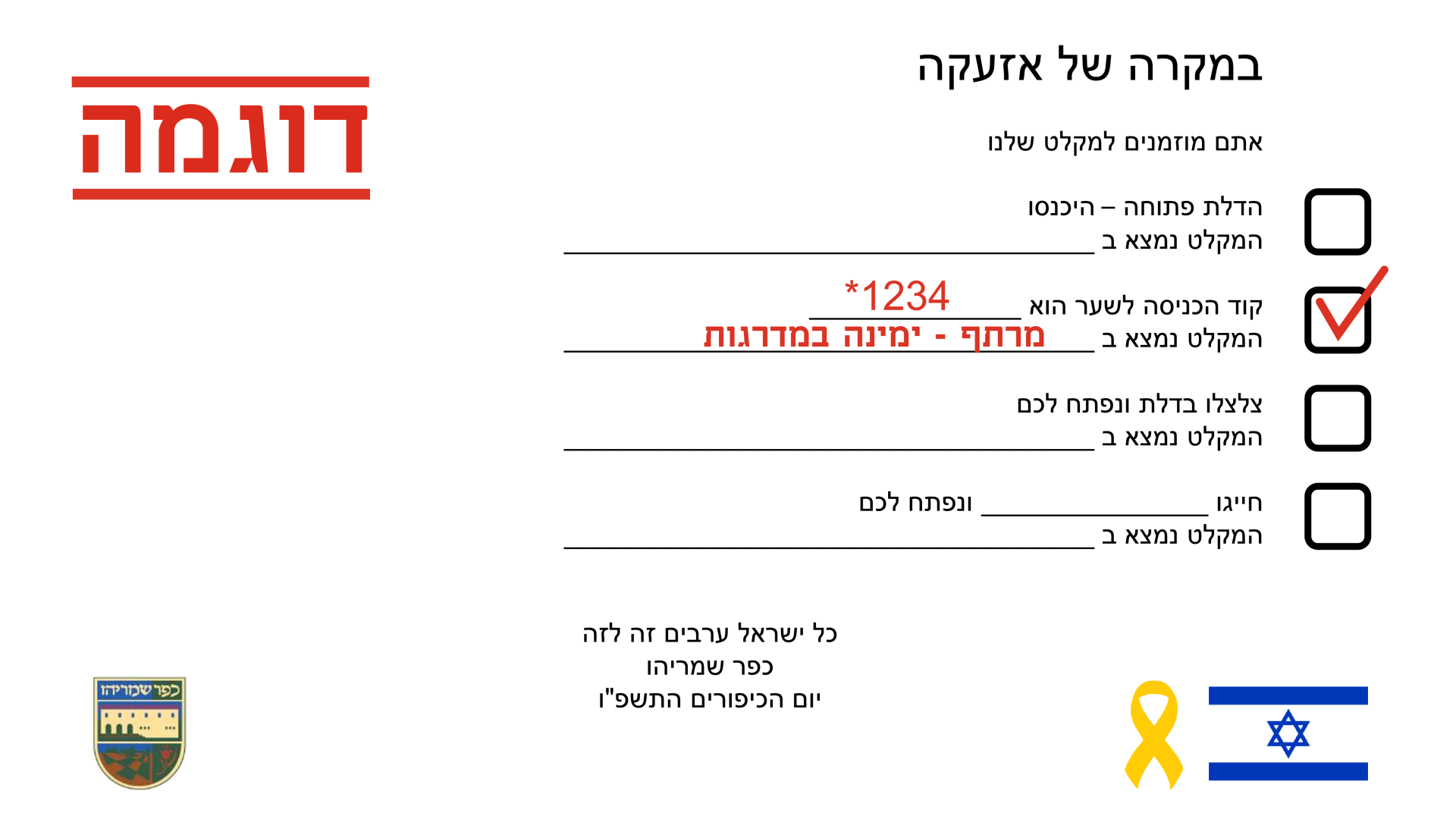 - מסמך לדוגמה לסימון — מראה דוגמה לאופן מילוי (כל פרט למילוי הוא המלצה בלבד)