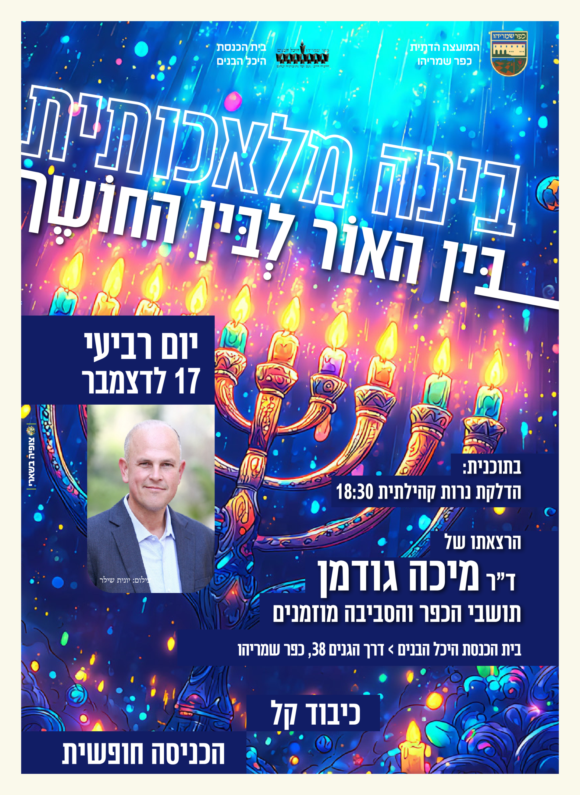 הדלקת נרות קהילתית והרצאה של ד"ר מיכה גודמן