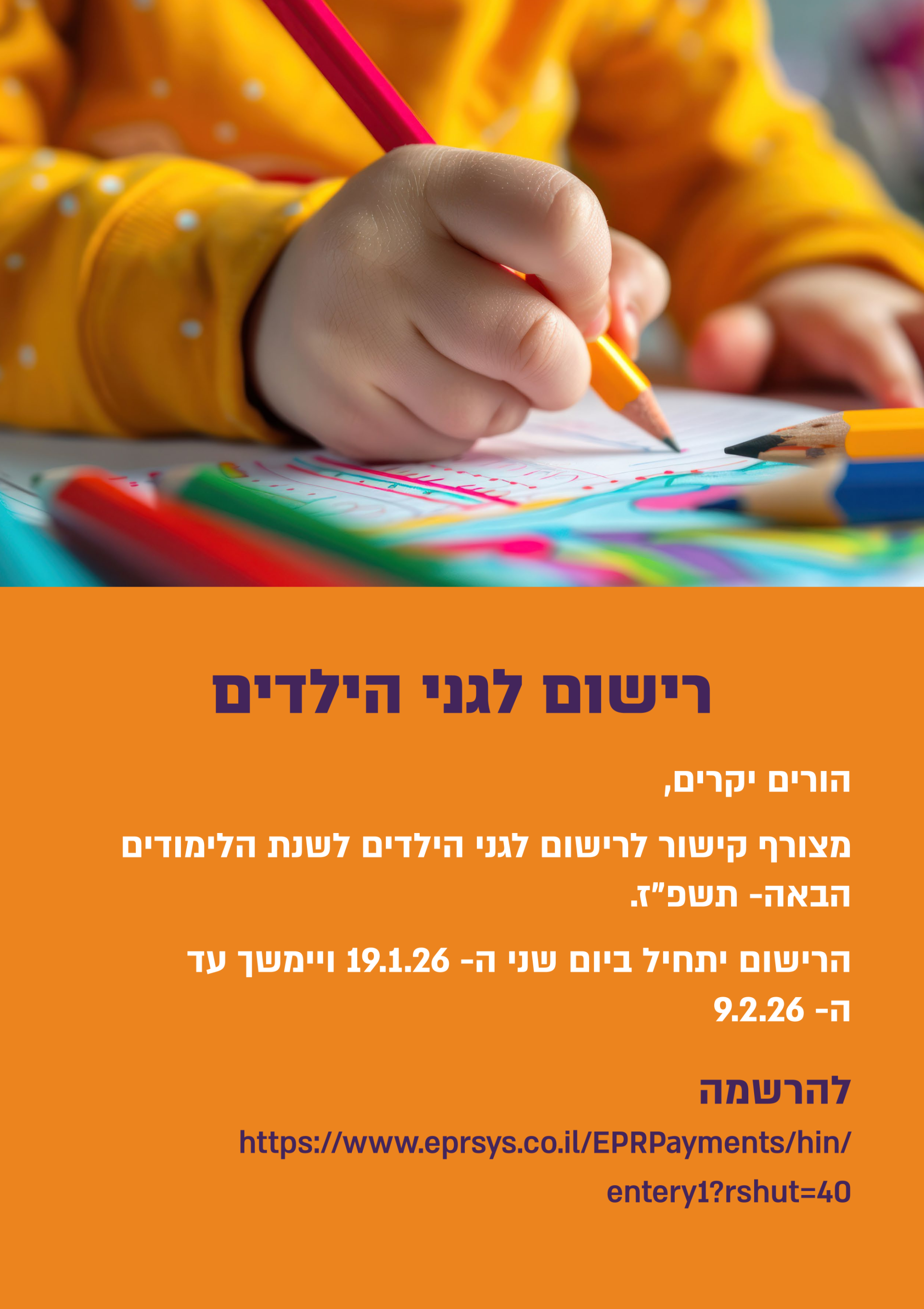 רישום לגני הילדים לשנת הלימודים הבאה - תשפ"ז