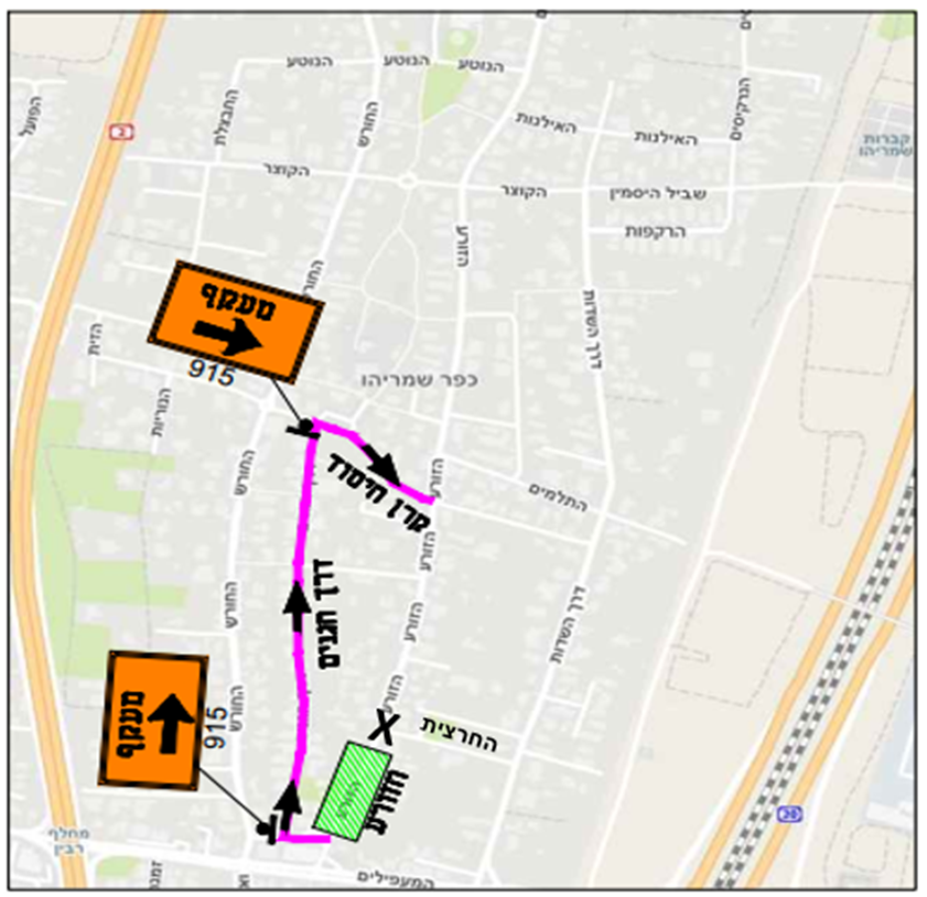 - להלן תכנית הסדרי התנועה לעבודות מרח' החרצית עד רח' קן היסוד כאשר קטע זה של הדרך יהיה חסום לתנועת רכבים: